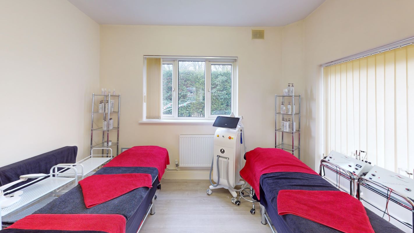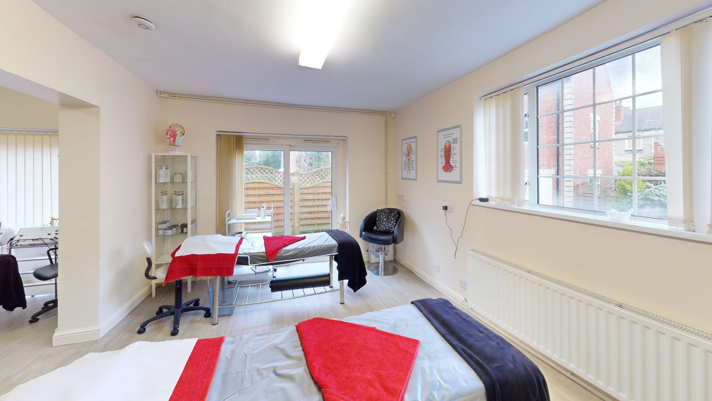 The property is currently used as a commercial premises, featuring a reception area, beauty treatment rooms, four training academy rooms, and multiple shower rooms with WCs.