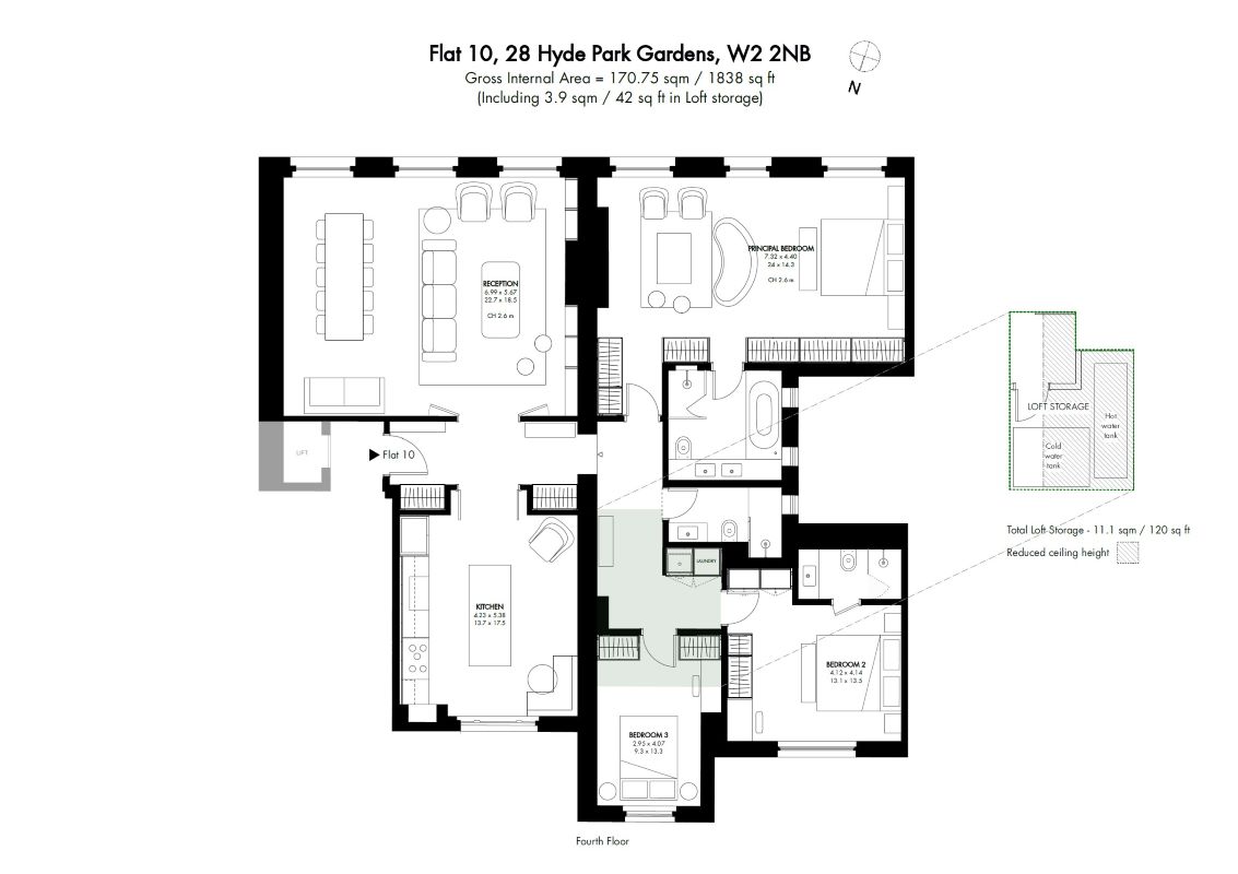 • Six south-facing sash windows with direct Hyde Park views