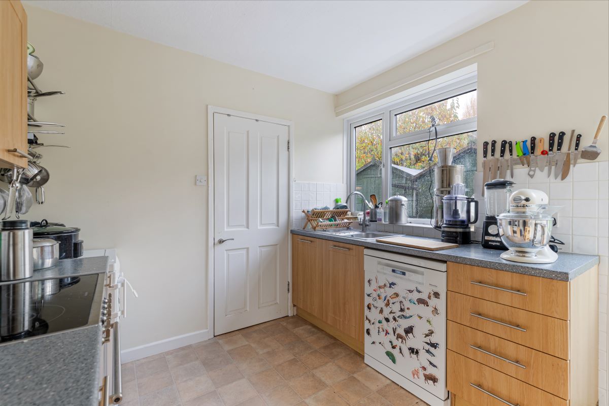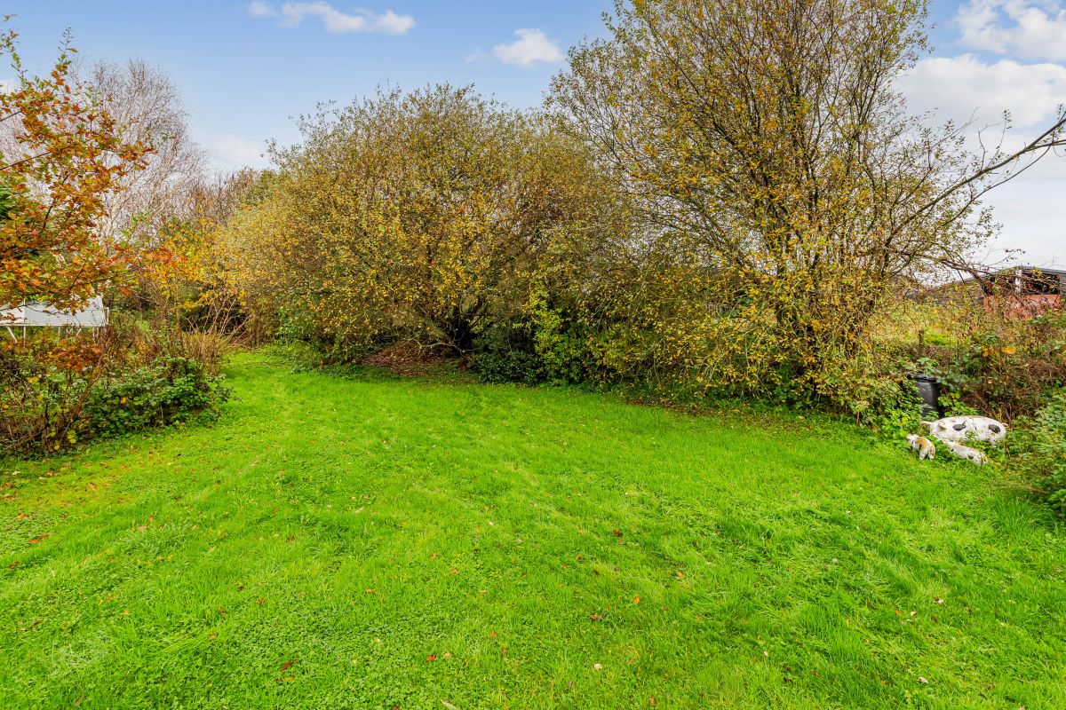 The property has front & rear gardens with part hedgerow boundaries and established planting.