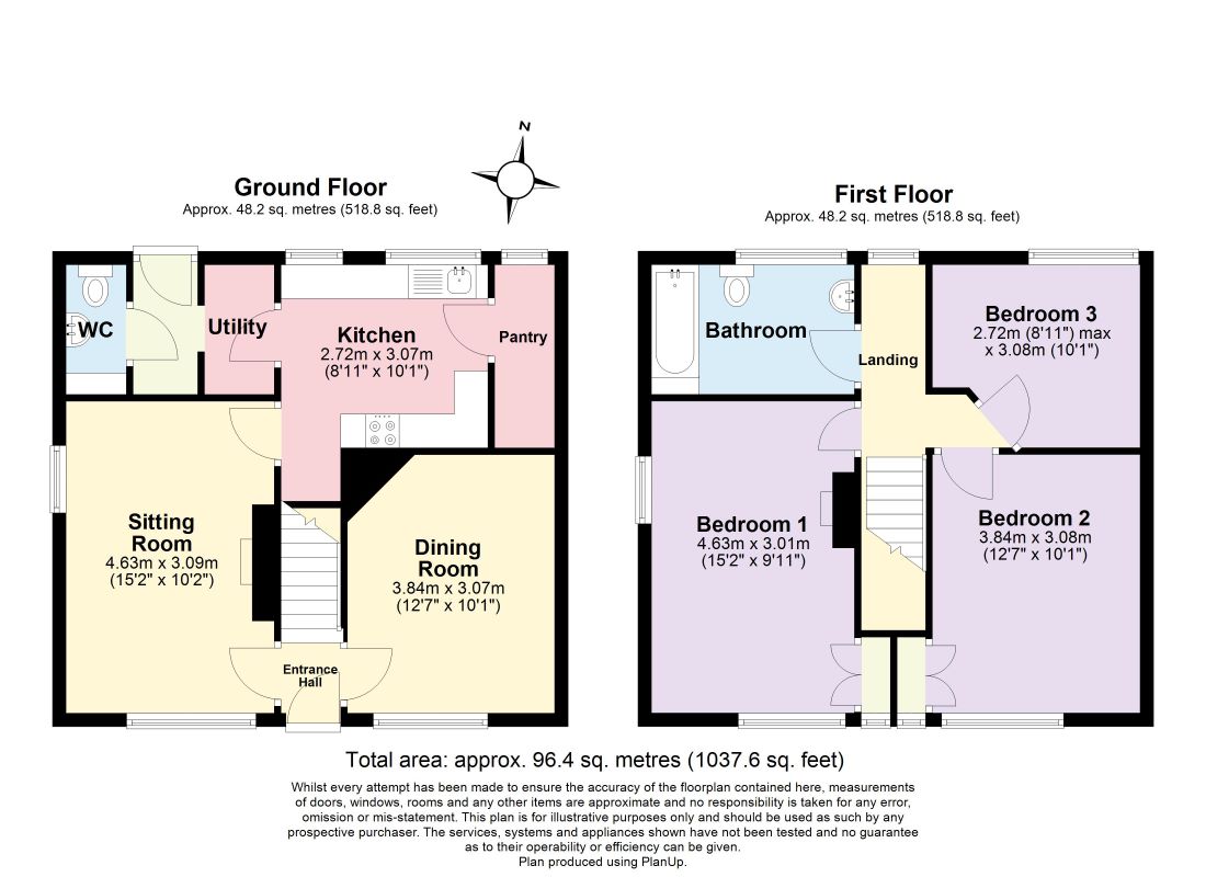 Total - 96.4 sq m (1,036 sq ft)