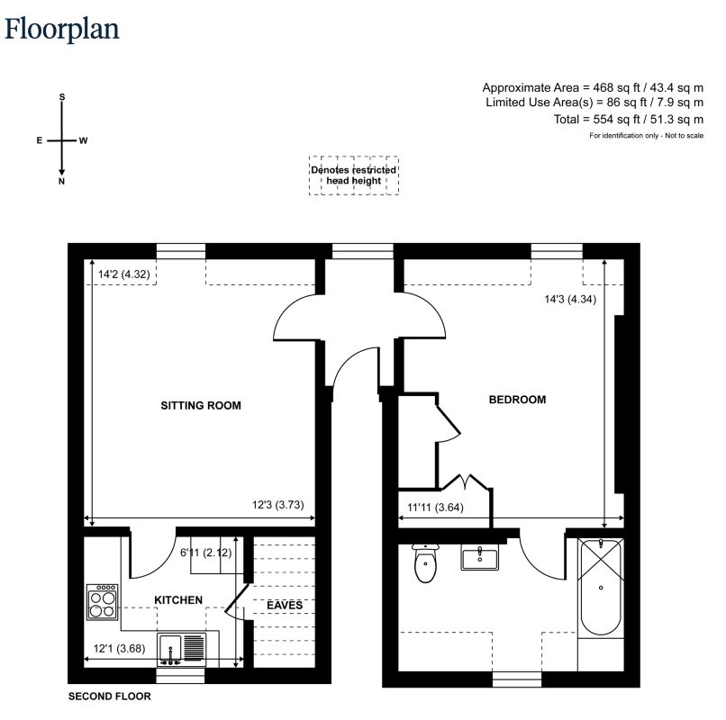 Floor Area: Approx. 51.3 sq m (554 sq ft) (including 86 sq ft of Limited Use Area under eaves)