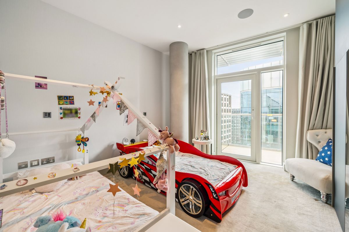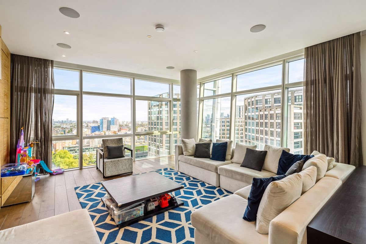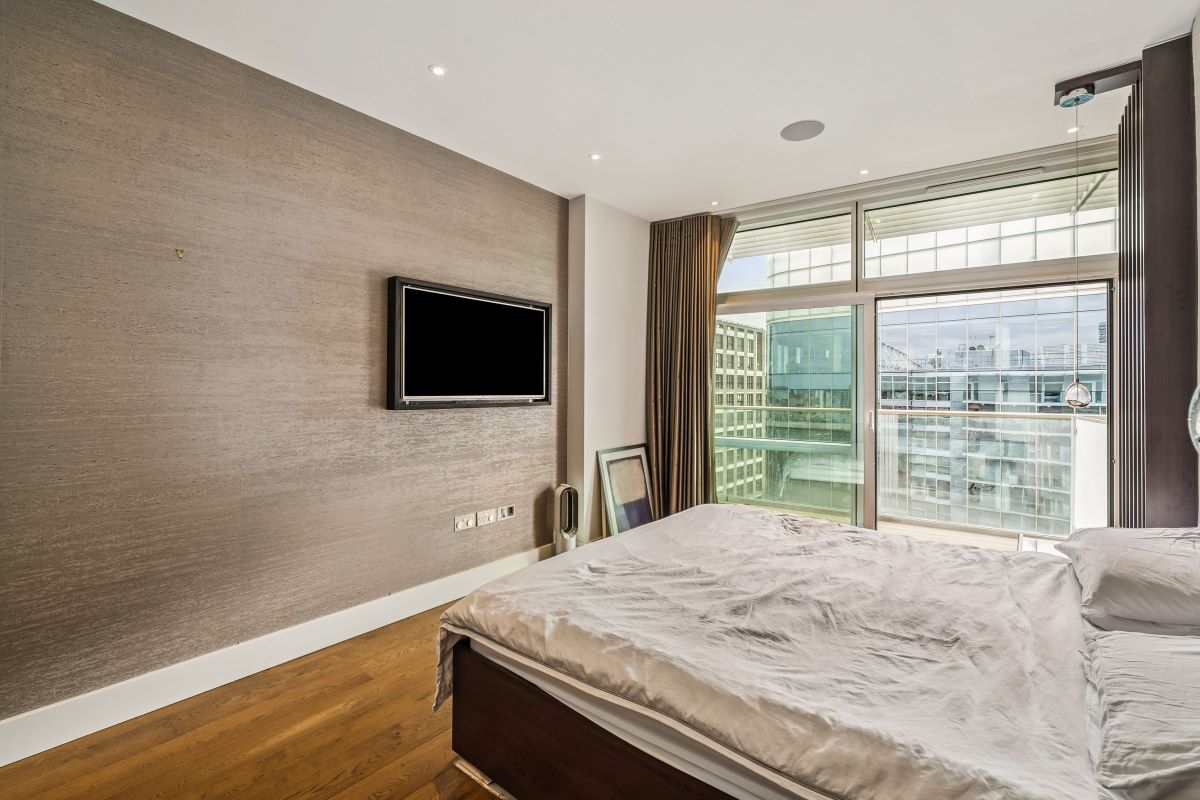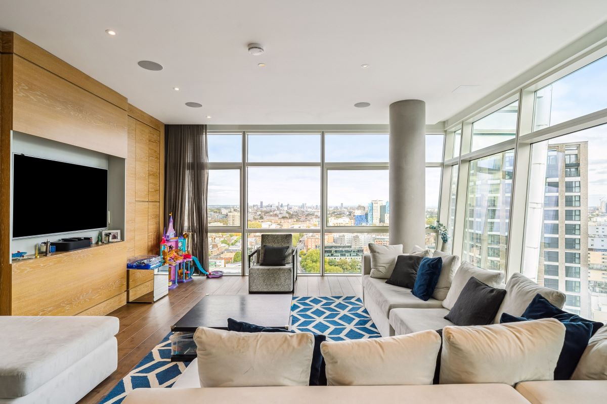 Designed for modern living, the apartment features high ceilings, floor-to-ceiling glazing, and a vast open-plan reception and kitchen area — ideal for both everyday living and entertaining. The bespoke Bulthaup kitchen is fitted with Miele appliances, combining minimalist German design with exceptional performance. The generous layout ensures abundant natural light and a seamless flow, with all principal rooms benefitting from the impressive scale and views.